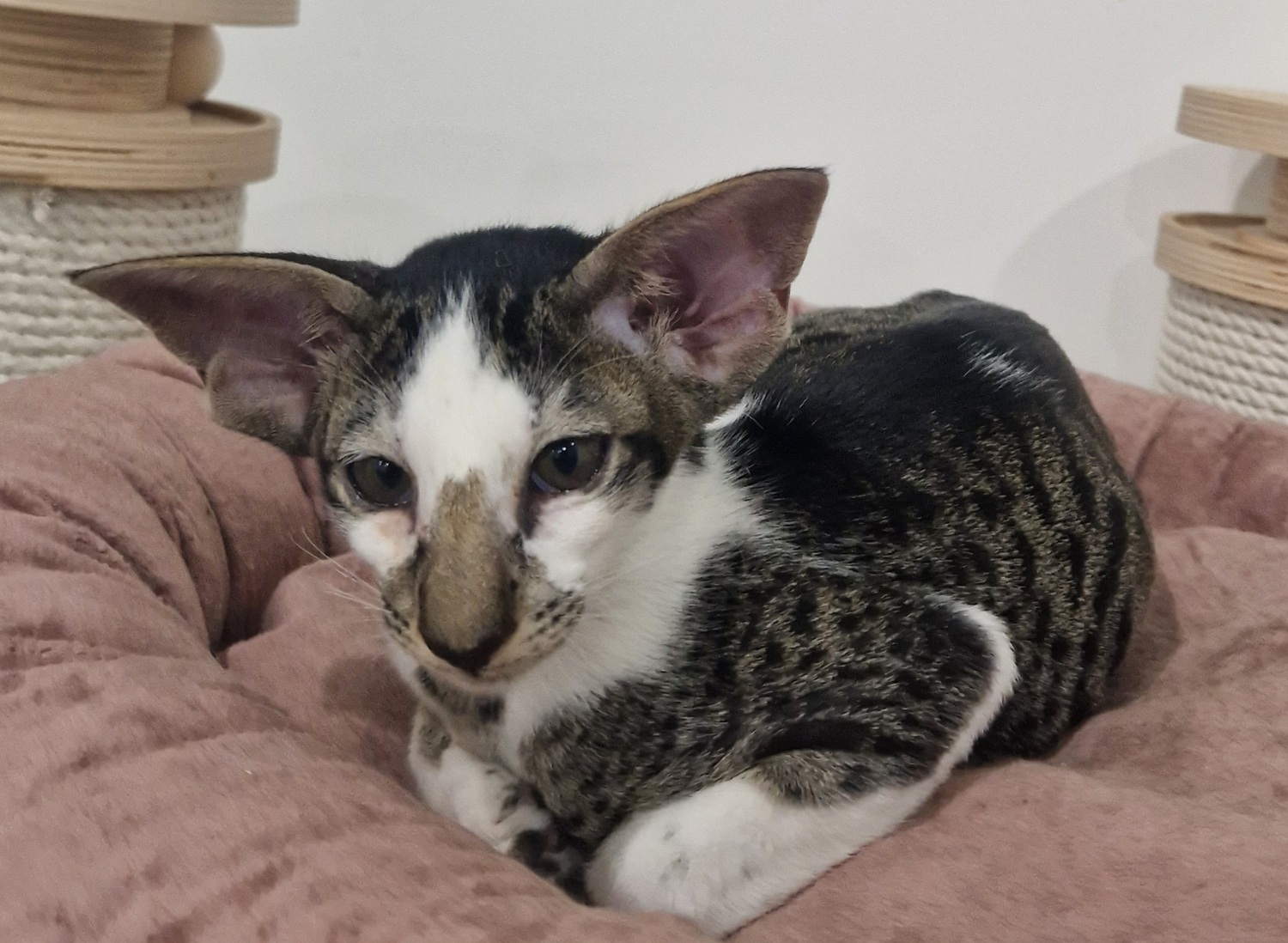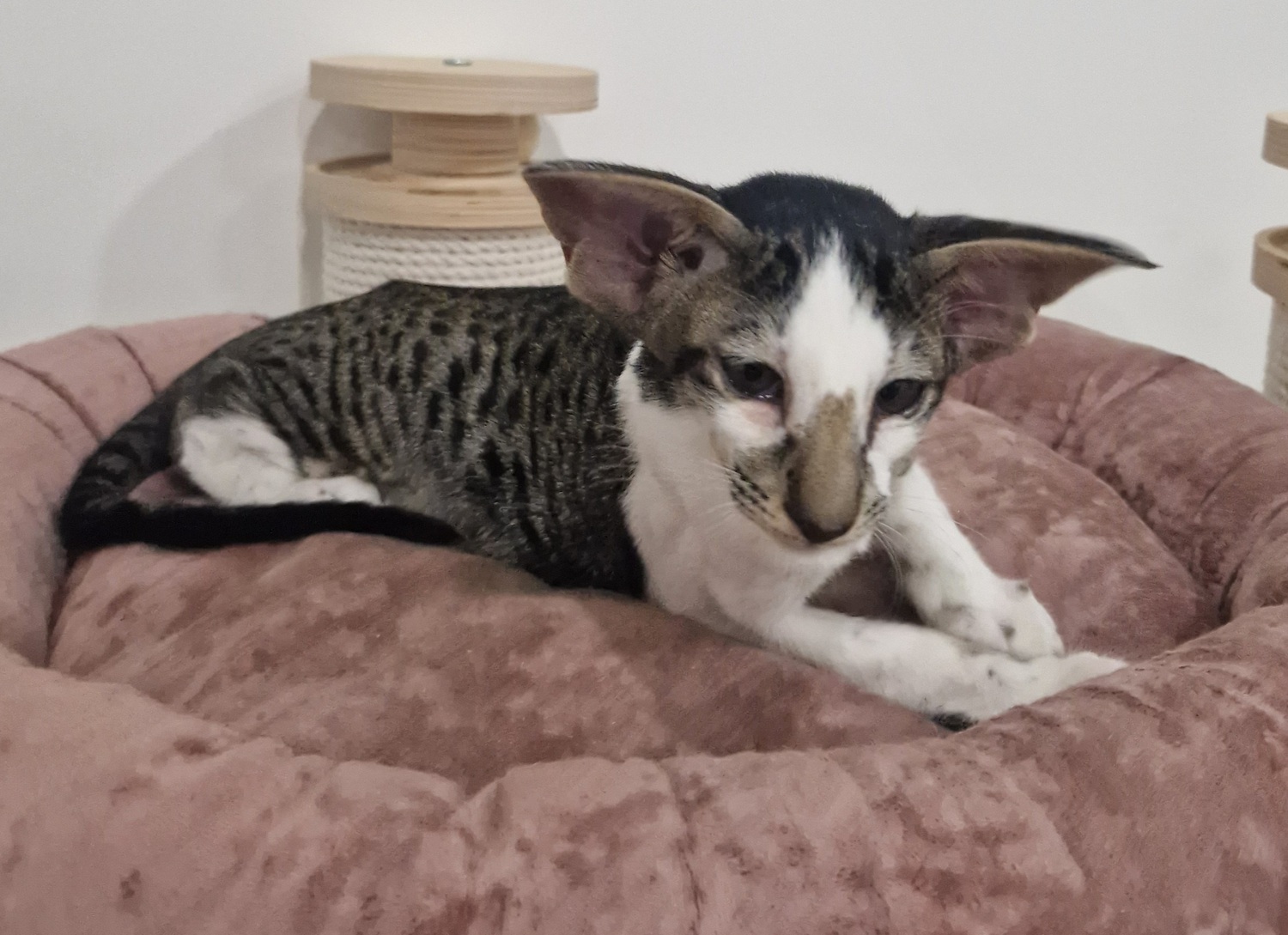 Забрала прекрасную девчушку.Говорливая, активная,очень ласковая кошачие манеры на 5+ с двумя сфинксами подружилась за 3 дня.Я очень довольна.